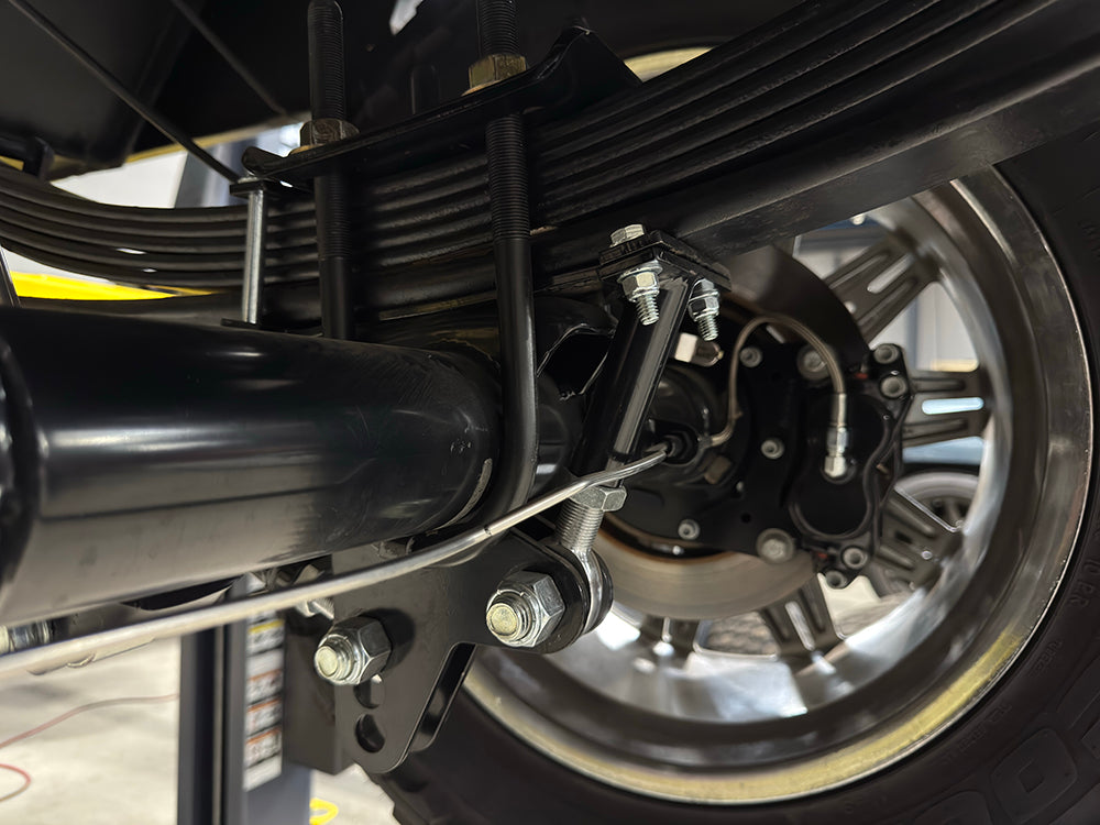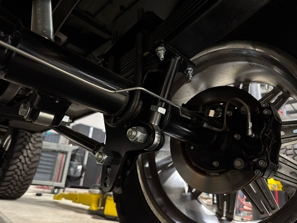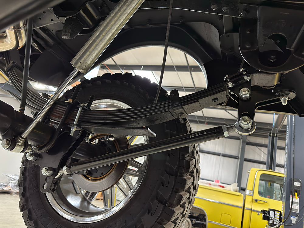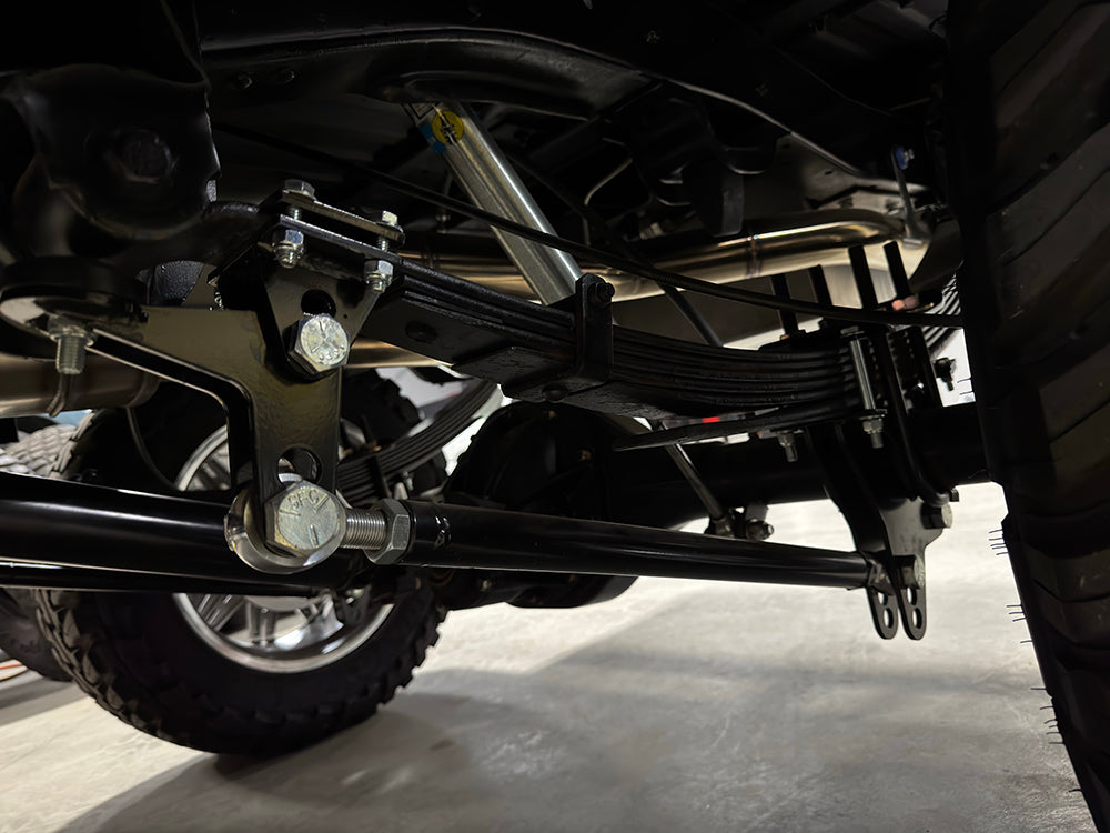 Note: Our traction bars are offered for lowered trucks with the axle flipped above the leaf spring, as well as stock height and lifted trucks up to a 2" block. Please choose according to your application.